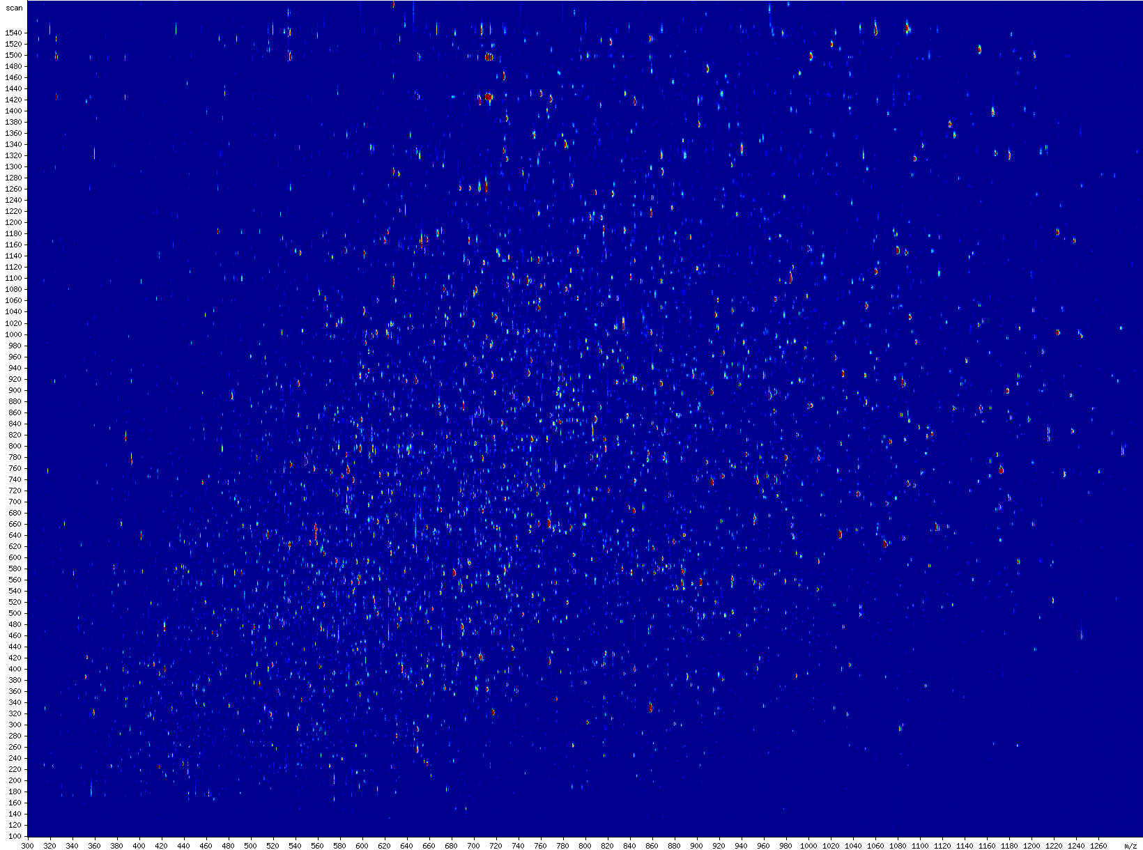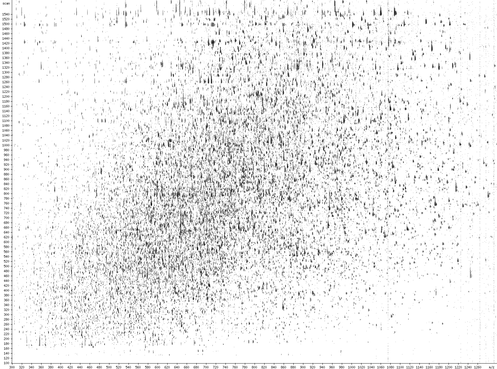 | mzXMLplot -i E_coli.mzXML -o E_coli_1.png -s 100,1600 -m 300,1300 -p 1600,1200 -B 500000 -t -log |